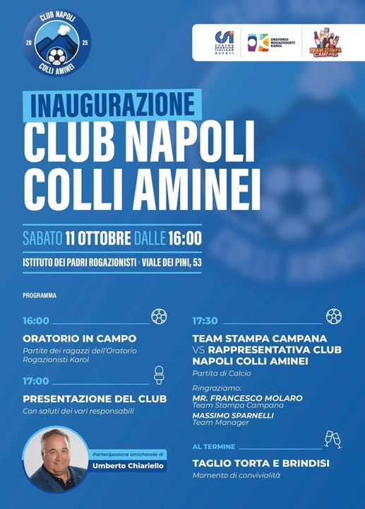 Club Napoli Colli Aminei, sabato l’inaugurazione