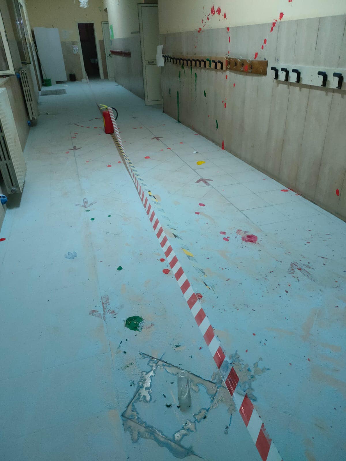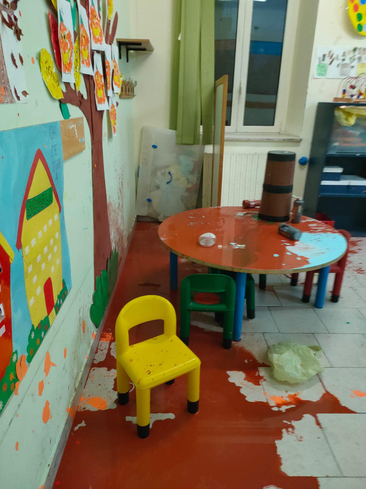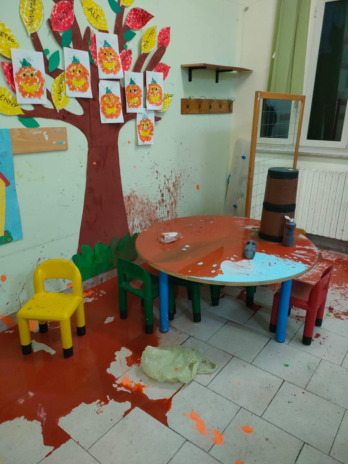 A dare la notizia, corredata di foto, è il Sindaco di Crispano Michele Emiliano. Dagli scatti si può notare che le aule sono state barbaramente messe in disordine: strumenti per la didattica lasciati sui banchi, tempera versata a terra, sui muri e sulle finestre.