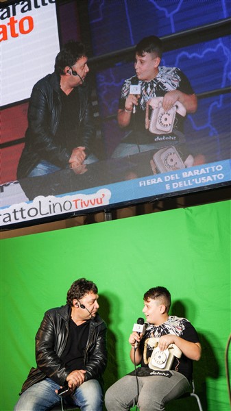 Lino d’Angio è stato ieri e sarà anche oggi, il protagonista della BarattolinoTivvù: uno studio tv reale impiantato nella Fiera trasmetterà in diretta tutta la giornata di sabato 26 e domenica 27 novembre su uno schermo gigante e sulla pagina Facebook della Fiera del Baratto e dell’Usato. Sarà una trasmissione dal carattere allegro, scanzonato e ironico che avrà il duplice scopo di fare da telecronaca dell’evento e di sensibilizzare i cittadini al riuso e al baratto come una vera e propria tv di strada.