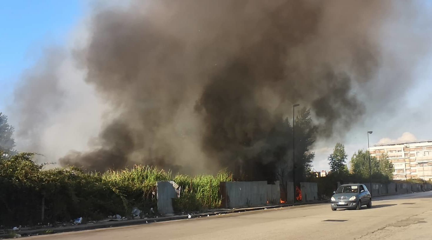 NAPOLI – Una grossa nube di fumo si alza nel cielo partenopeo in questa calda domenica d’Agosto. Un vistoso incendio sta divampando in questi minuti nei pressi del Centro Direzionale: precisamente, in Via Bussola nel quartiere di Poggioreale.