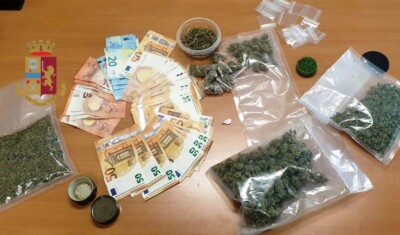 All’arrivo dei poliziotti l’uomo ha lanciato da una finestra una busta con 4 sacchetti sottovuoto di marjuana del peso complessivo di circa 190 grammi; inoltre, nell’appartamento sono stati sequestrati 1500 euro, un involucro contenente cocaina di circa 0.20 grammi e materiale per il confezionamento della sostanza stupefacente.