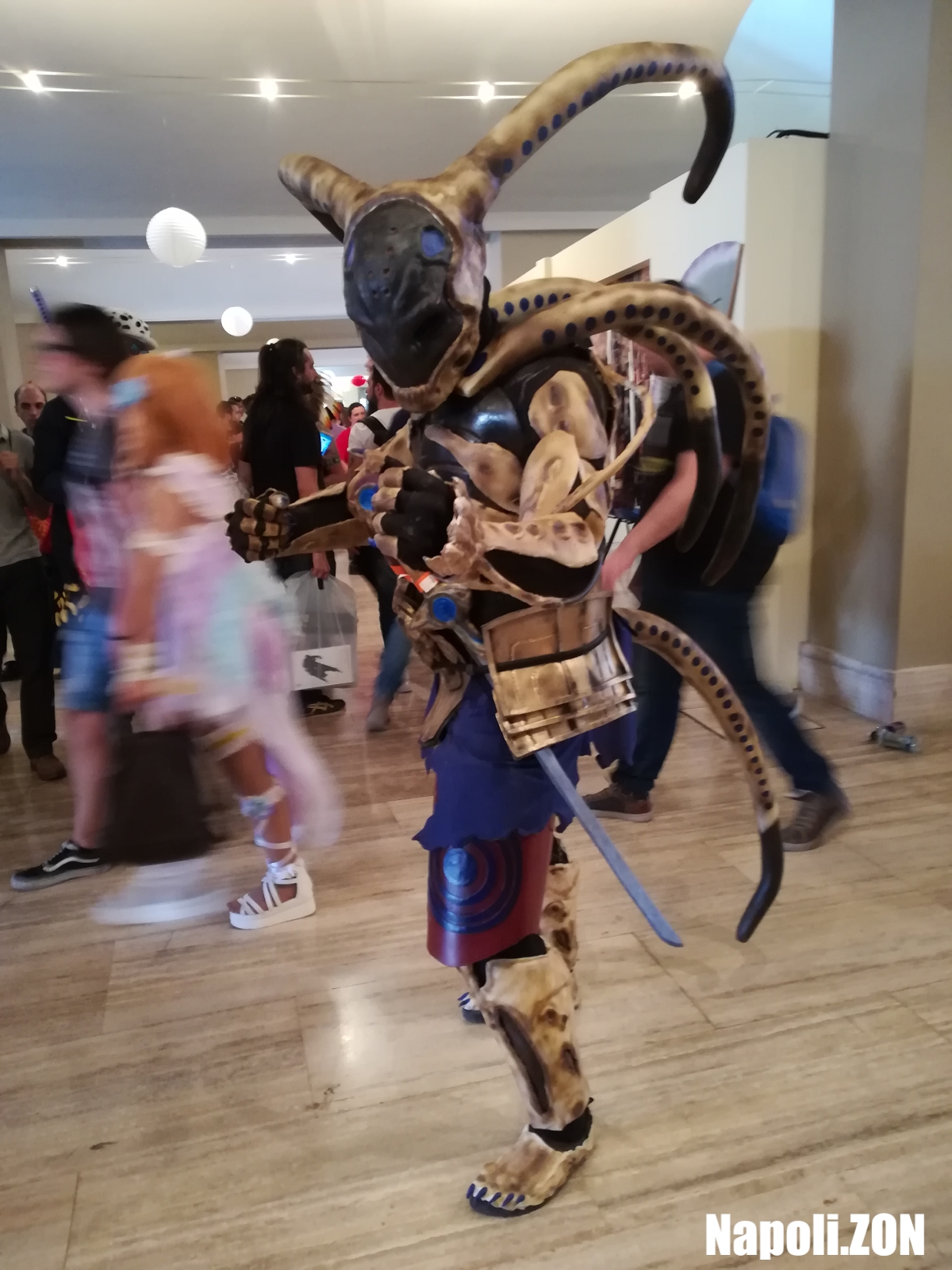 Grande affluenza di visitatori per il secondo giorno del Napoli Comicon 2018. Tra i tantissimi eventi che si sono susseguiti in questa giornata, il più atteso dagli appassionati di cosplay è stato la Challenge a loro dedicata. Il Cosplay Challenge, organizzato in collaborazione con EPICOS, ha visto sfidarsi a partire dalle 14.00 numerosi cosplayer sul Main Stage dell’ETES Arena Flegrea. Tra i vari premi messi a disposizione dai partner della manifestazione, una Nintendo Switch è stata assegnata al cosplayer primo classificato. Uno dei giudici del contest è stato Takahiro Sakai, alias Goldy, cosplayer di fama mondiale specializzato in robot e armature, e special guest dell’area Asian Village.