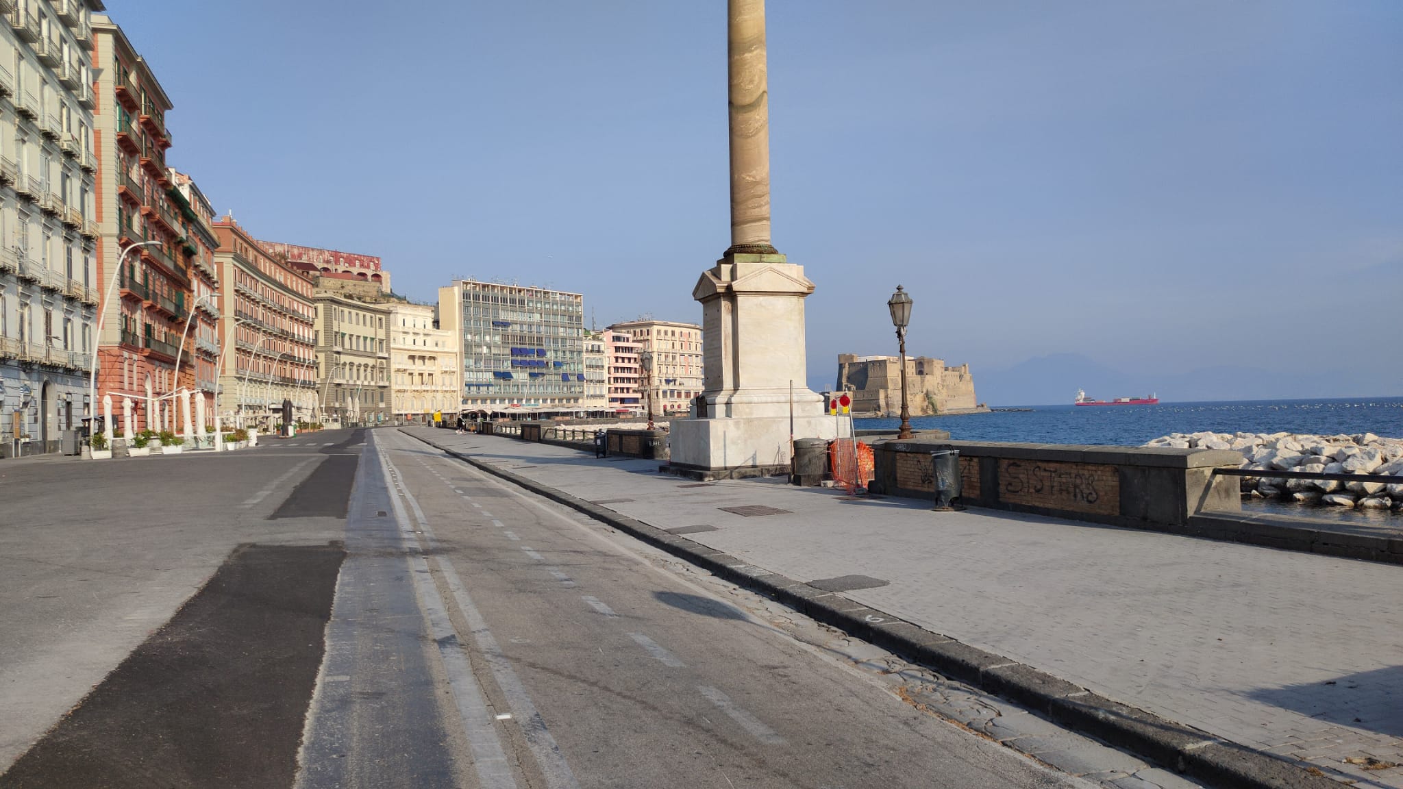 Anche sul Lungomare di Napoli, a Piazza Vittoria e sulla Riviera di Chiaia le strade sono completamente deserte. Il buon segno che il popolo napoletano, per il bene di tutti e soprattutto di chi lotta in corsia, resta a casa e rispetta le regole.