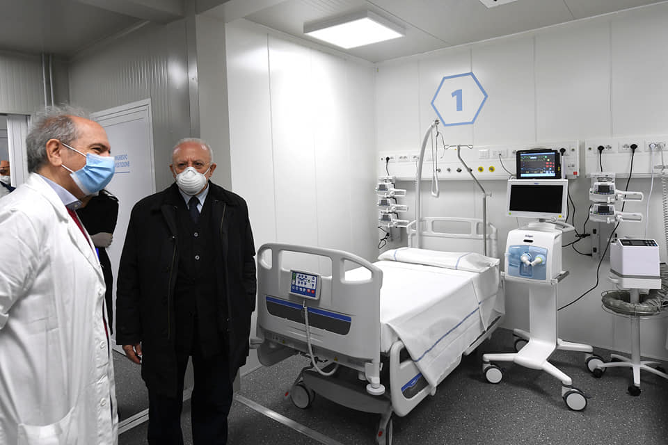 “Il progetto dei 120 posti letto di terapia intensiva in più sarà completato nei prossimi dieci giorni con altri 24 posti letto al S. Anna di Caserta e altrettanti al Ruggi di Salerno. Senza squilli di tromba, nasce una struttura ospedaliera di altissimo livello, con pazienti Covid collocati in un’area ospedaliera separata dal resto dell’ospedale. Una grande prova di efficienza: in 20 giorni è stato realizzato un ospedale vero, non un ospedale da campo.”