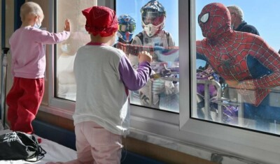 “È nata così l’idea di arrivare ai piccoli direttamente dalle finestre: una enorme gru ha issato il motociclista Vanni Oddera, accompagnato dal suo collega motociclista Maurizio Gerini e Mattia Villardita nei panni del supereroe Spiderman davanti alle finestre dei reparti di Clinica pediatrica, Nefrologia, Ematologia e Oncologia”, scrive il personale dell’Istituto Giannina Gaslini di Genova.