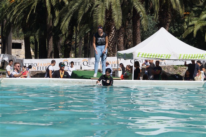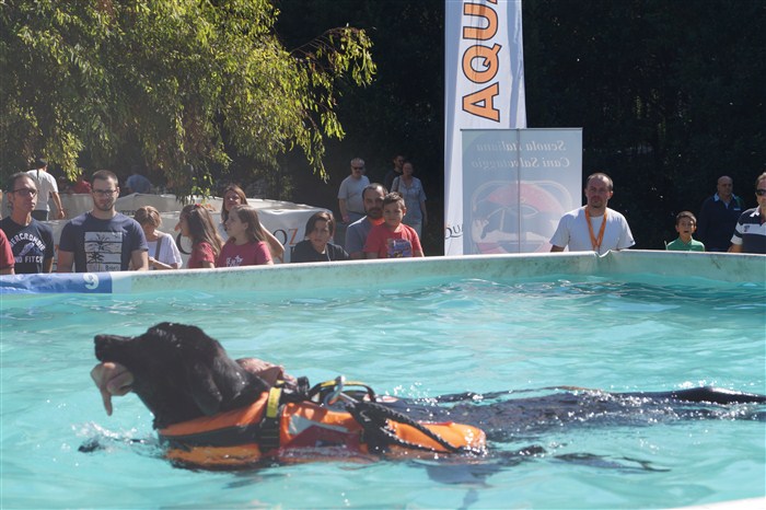 Suggestiva ed interessante è stata la dimostrazione dei cani di salvataggio, che tra un tuffo e l’altro hanno incantato i visitatori dimostrandosi dei veri e propri eroi a quattro zampe.
