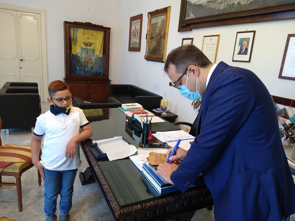 Durante l’incontro, Christian ha fatto dono al Sindaco di un disegno e di una lettera. Continua il primo cittadino: «Ed io ho voluto omaggiarlo con lo stemma della nostra città, di cui si è rivelato un degno rappresentante. Rispettare l’ambiente vuol dire rispettarsi l’un l’altro. Tutti dobbiamo seguire questi esempi, tutti dobbiamo voler bene alla nostra città.»