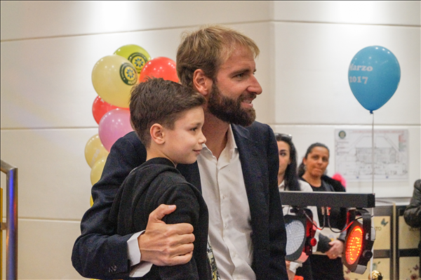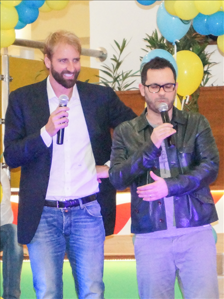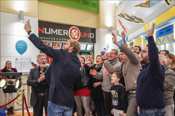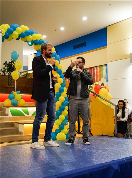 Ore 18:00 Massimiliano Rosolino sale sul palco allestito all’Auchan di Mugnano per l’evento organizzato dalla struttura.
