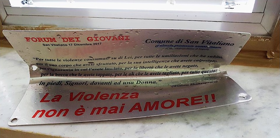 Atti di vandalismo nel napoletano, precisamente a San Vitaliano. Ad essere danneggiata è la panchina rossa realizzata in memoria delle donne vittime di violenza in piazza Leonardo Da Vinci, luogo principale del paese.