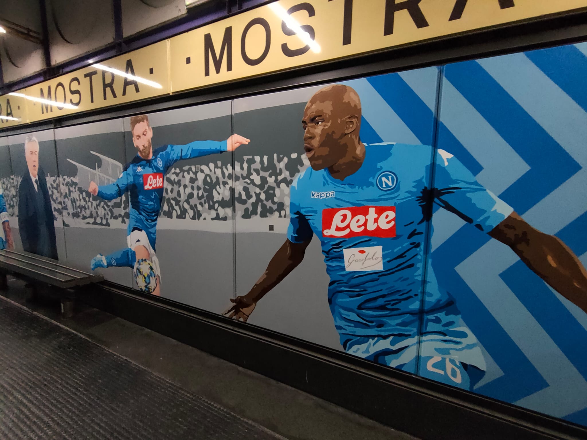 Il Napoli rappresentato nella fermata Mostra dell’EAV