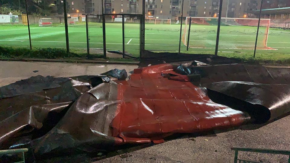 Tragedia sfiorata allo stadio Landieri di Scampia, ieri sera, poco prima delle 18, una forte folata di vento ha staccato la guaina dal tetto degli spogliatoi. In quel momento alcuni ragazzini stavano disputando una partita, ma, fortunatamente, sono rimasti illesi.