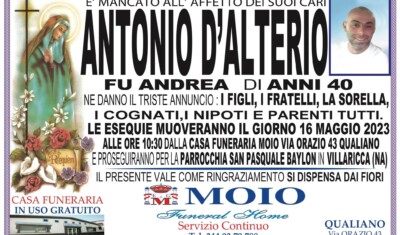 FU TRAVOLTO DA UN’AUTO, MORTO DOPO UN ANNO DI AGONIA. Due comunità in lutto quelle di Villaricca e Qualiano per la morte di Antonio D’Alterio, 40enne, giovane padre.