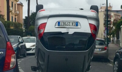 Via Manzoni: invasa la carreggiata da un’autovettura ribaltata