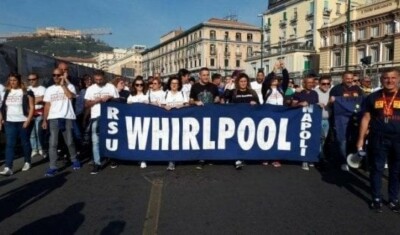 Quest’oggi le donne e gli uomini della Whirlpool si sono radunati in Piazza del Plebiscito a Napoli dove hanno esposto uno striscione che recita: